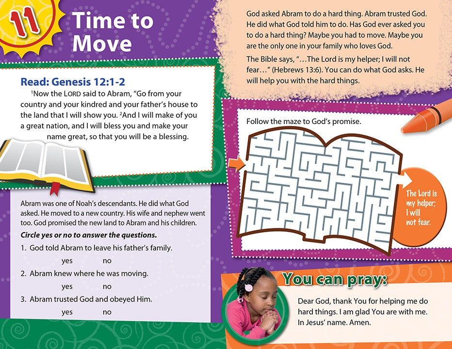 In this 30-day devotional for kids 6-8 years old, children will learn about Creation and the person of God, through Moses and the giving of the Law. This is the first book of a six book series.